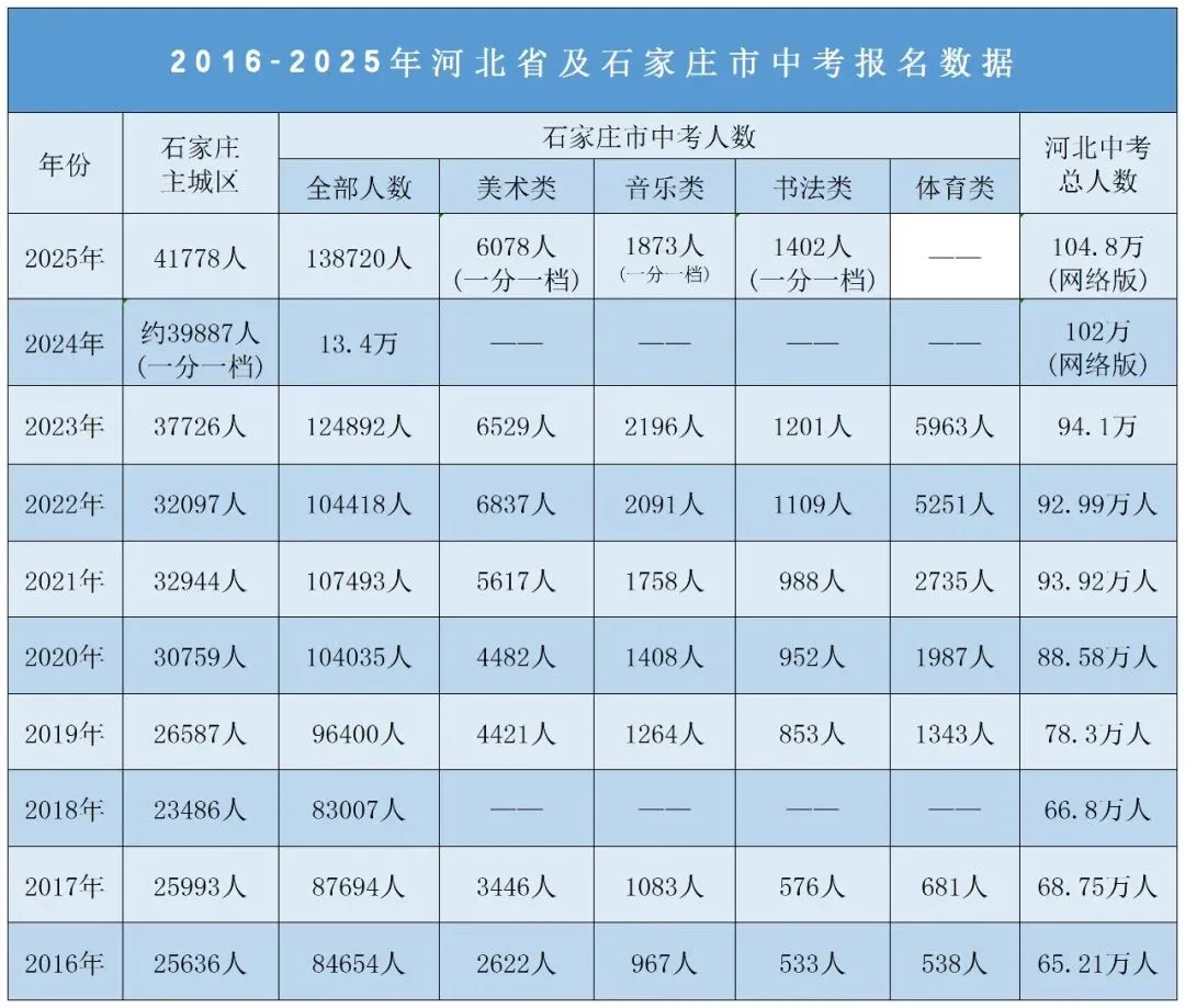 >2026中考|石家庄往年中考报名人数