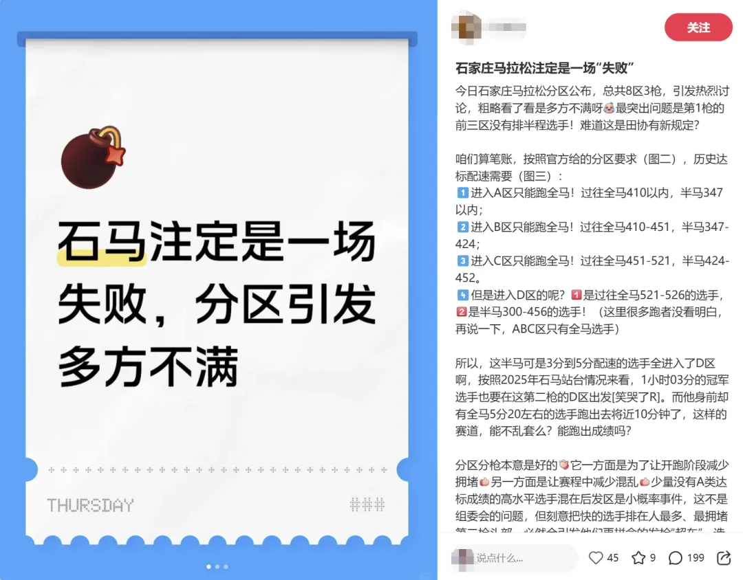 近日,石家庄马拉松分区公布,此次赛事共设8区3枪,消息一出便引发了跑友们的热烈讨论,其中不满之声众多,一位资深跑友提出了多方面质疑。