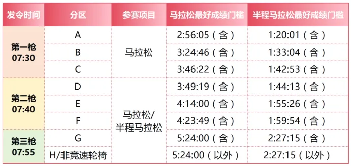 按照官方分区要求,A、B、C区仅允许全马选手进入,且对过往全马成绩有严格限制,如A区要求过往全马410以内,半马347以内;B区过往全马410 - 451,半马347 - 424;C区过往全马451 - 521,半马424 - 452。而D区则包含了过往全马521 - 526的选手以及半马300 - 456的选手,这意味着半马3分到5分配速的众多选手都被集中在了D区。