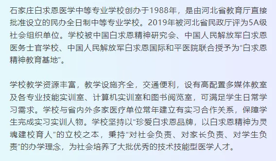 石家庄白求恩医学中等专业学校2026年春季班补录中!敬请广大家长和同学们仔细阅读,以便了解学校最新招生政策。