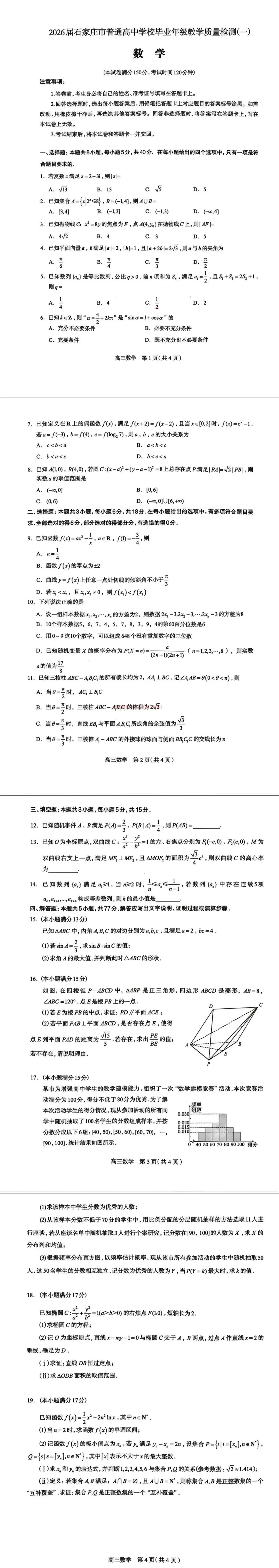 2026届石家庄市普通高中学校毕业年级教学质量检测(一)试卷及答案电子版拉到文末自取(已附下载链接)