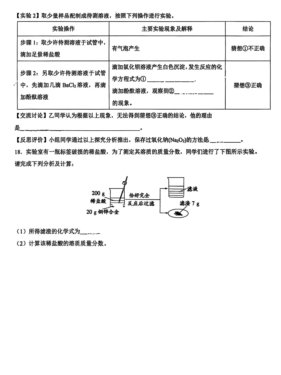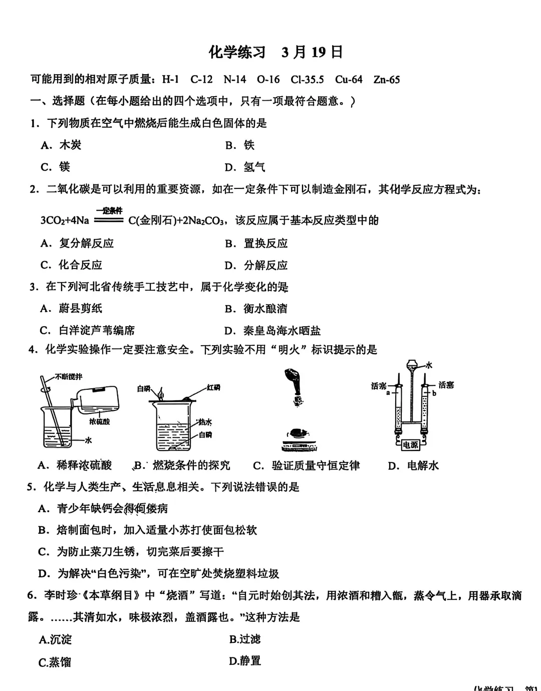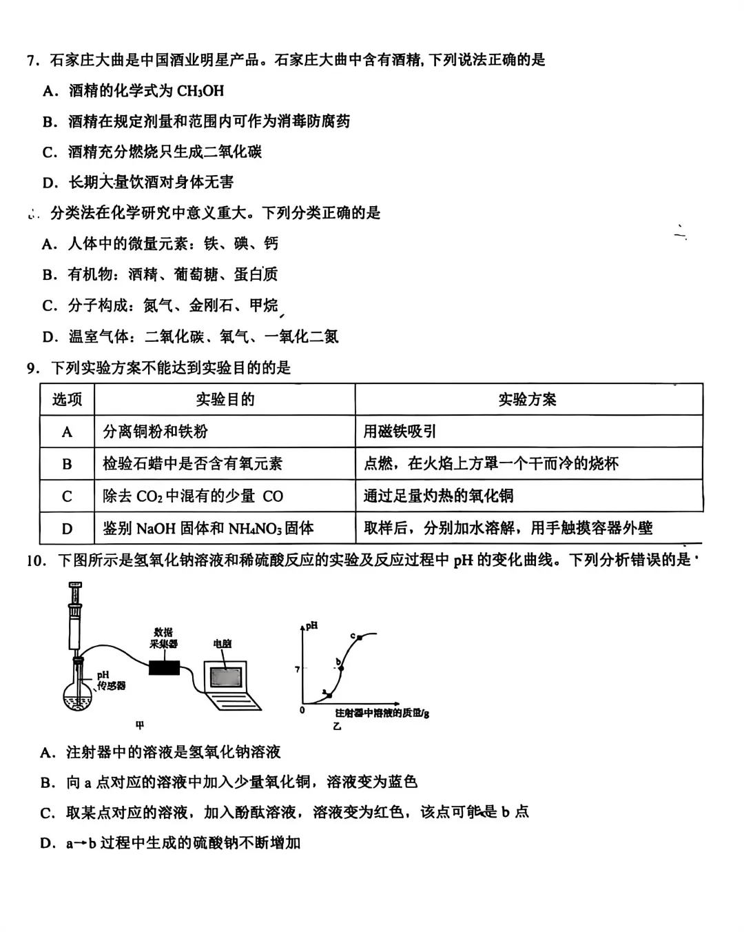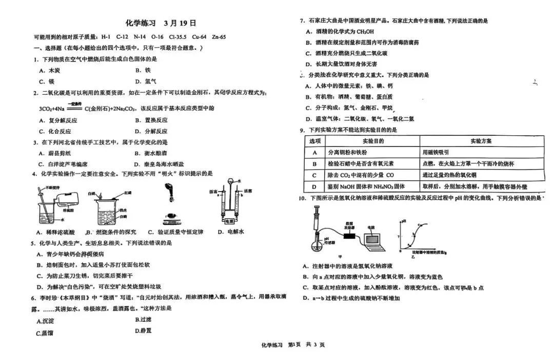 中考化学 | 2026.3河北省石家庄28中九年级校模卷