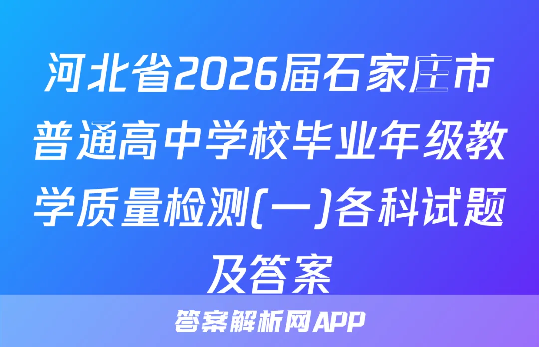 河北省2026届石家庄市普通高中学校毕业年级教学质量检测(一)各科试题及答案,答案解析网已经更新了河北省2026届石家庄市普通高中学校毕业年级教学质量检测(一)各科试题及答案