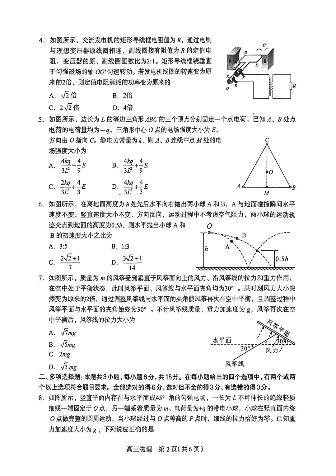 河北省2026届石家庄市普通高中学校毕业年级教学质量检测(一)物理试题