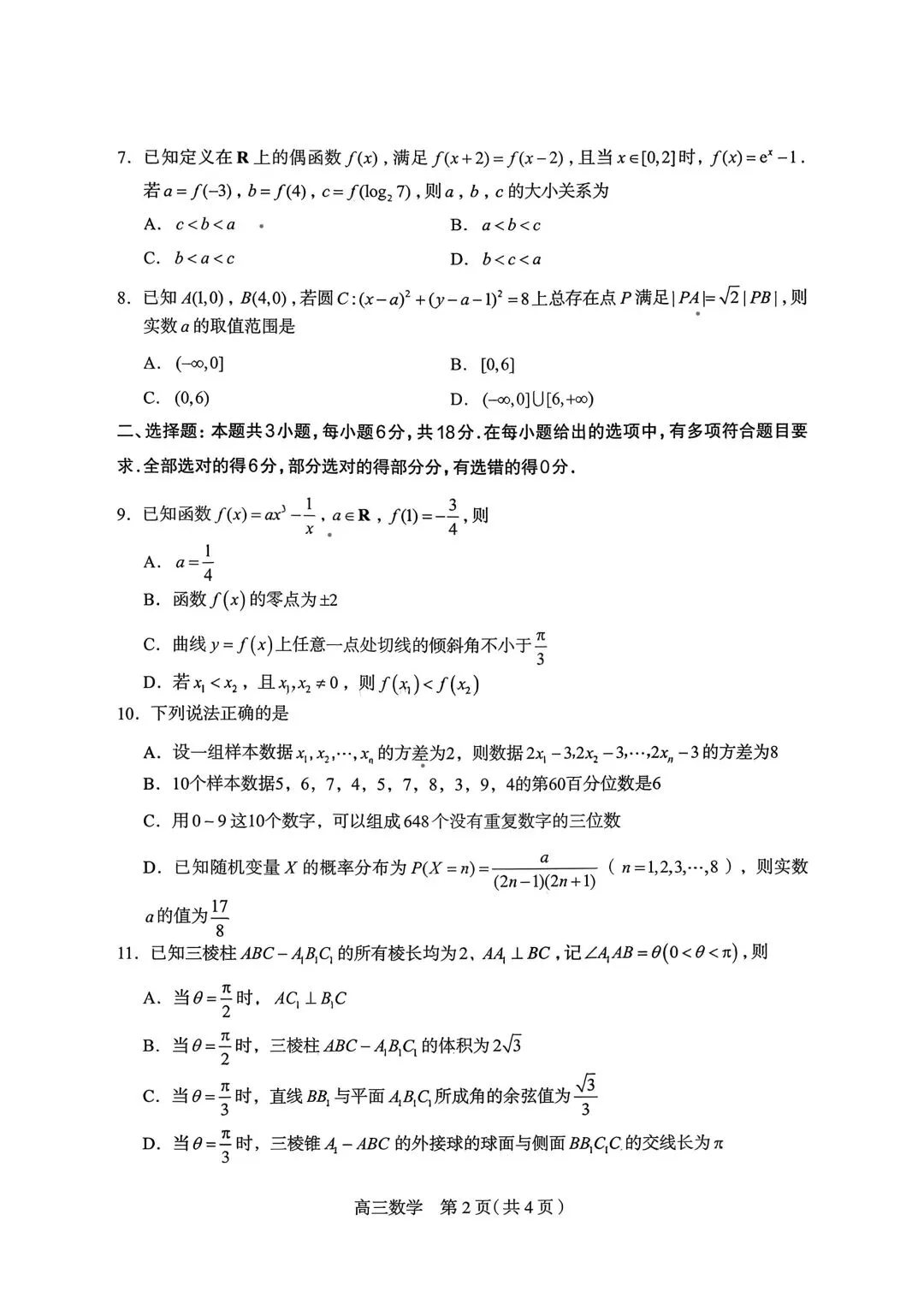 河北省2026届石家庄市普通高中学校毕业年级教学质量检测(一)数学试题