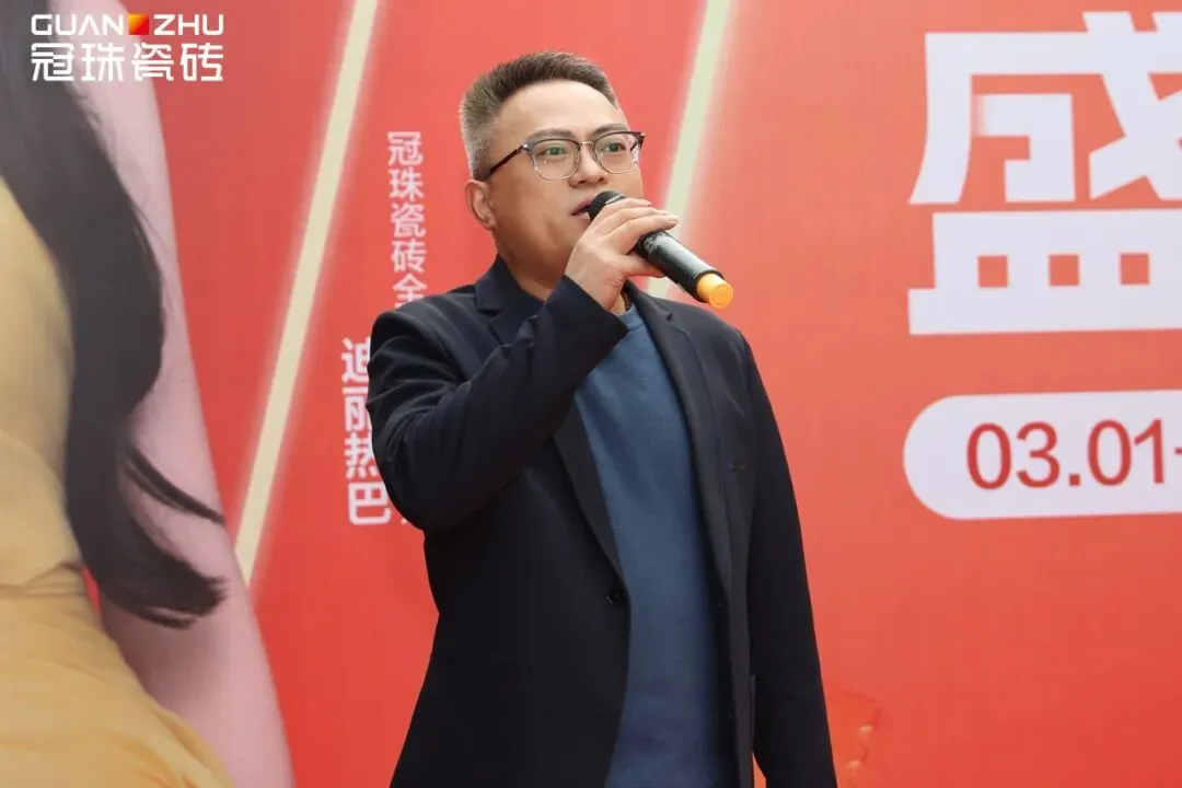 新明珠集团副总经理、冠珠瓷砖品牌总经理潘瀚作为品牌代表发表致辞。他表示,冠珠瓷砖30多年来始终与时代同频,以“人民对美好生活的向往”作为奋斗目标,2026年在产品、服务实现全面升级,切实践行“大美筑家”的承诺。品牌未来也将继续全力支持石家庄冠珠的发展,为当地消费者的美好人居建设贡献冠珠力量。