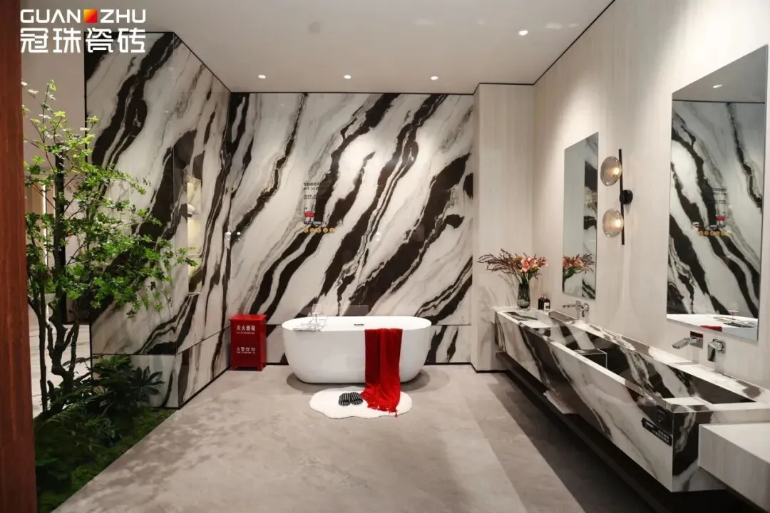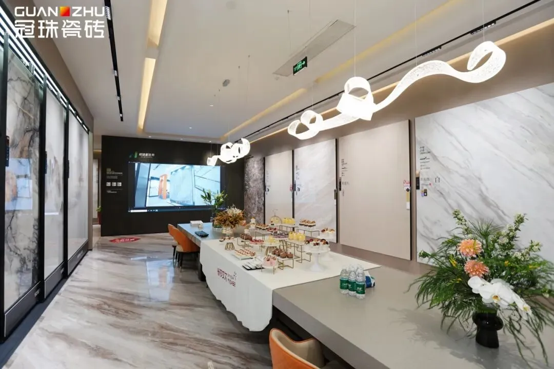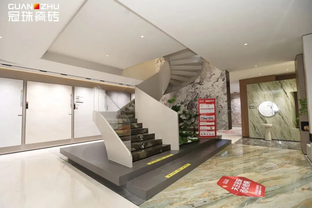 石家庄冠珠瓷砖旗舰店拥有超1500平方米的展示空间,集冠珠瓷砖全系列产品展示、东方人居范式空间应用示范、成品交付系统等于一体,采用沉浸式空间布局,每一处细节均彰显出高端品质与设计美学,高度契合消费者对于场景化体验的家装需求。
