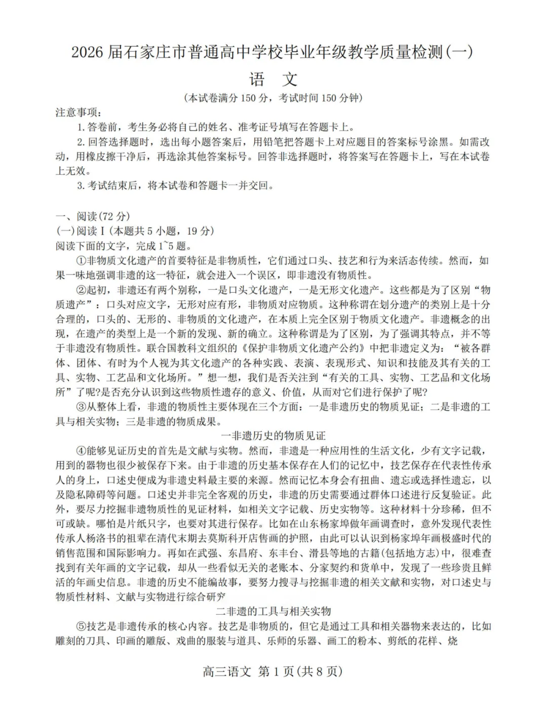 2026届石家庄市高三一模语文试卷,难度系数评4.0(1简单→5难)。
