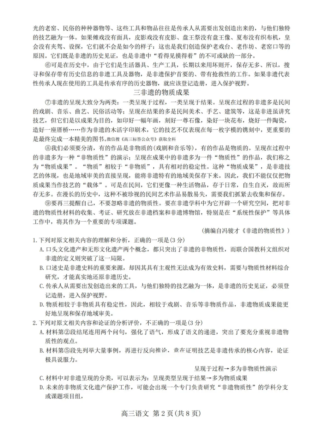 1、理解文中核心概念(非遗的物质性、物质成果、历史见证等)
