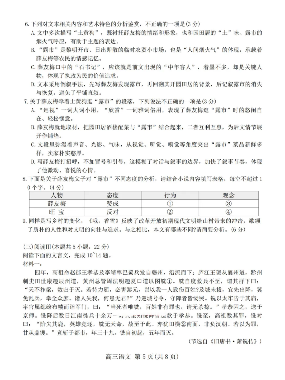 第9题比较题,不仅要知道两篇文章写了什么,还要从“乡村变化的表现方式”“矛盾焦点”“情感倾向”等层面区分,对文本深度理解要求高。