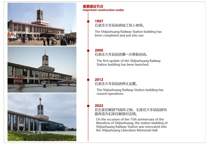 2022年,河北建院第六建筑设计院对站房进行改造,改造后功能为石家庄解放纪念馆于2023年4月开馆,成为河北省省会红色文化高地和爱国主义教育基地。纪念馆完整保留了老站钟楼、壁画与候车厅格局,全景再现1947年解放壮举与城市奋进历程。建筑在改造后新生,让历史与时代在此对话。