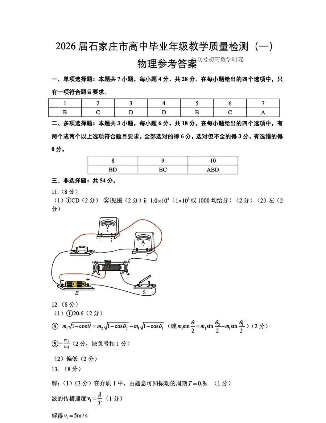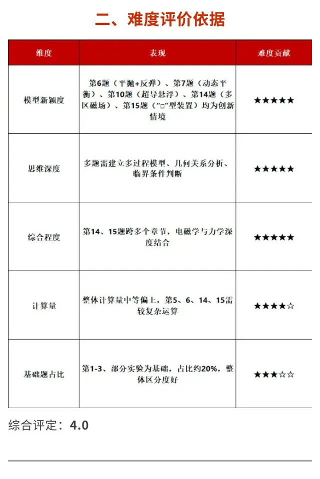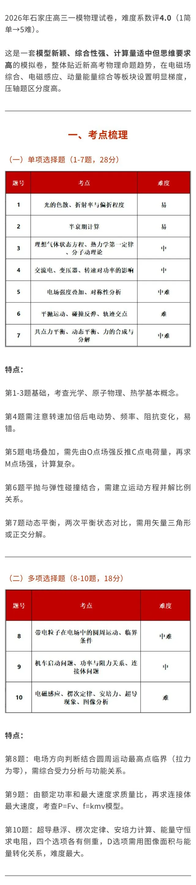 >金石复读部、艺考部|2026年石家庄高三质检一物理试卷难度分析