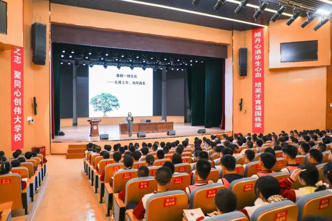讲座中,黄琦老师以“一棵树要长成参天大树,最重要的条件是什么?”这一问题引发学生思考,引出“参天之木,必有其根”的深刻意涵。她指出,高二学年是人生重要的“扎根期”,唯有向下深扎,方能向上稳健生长。