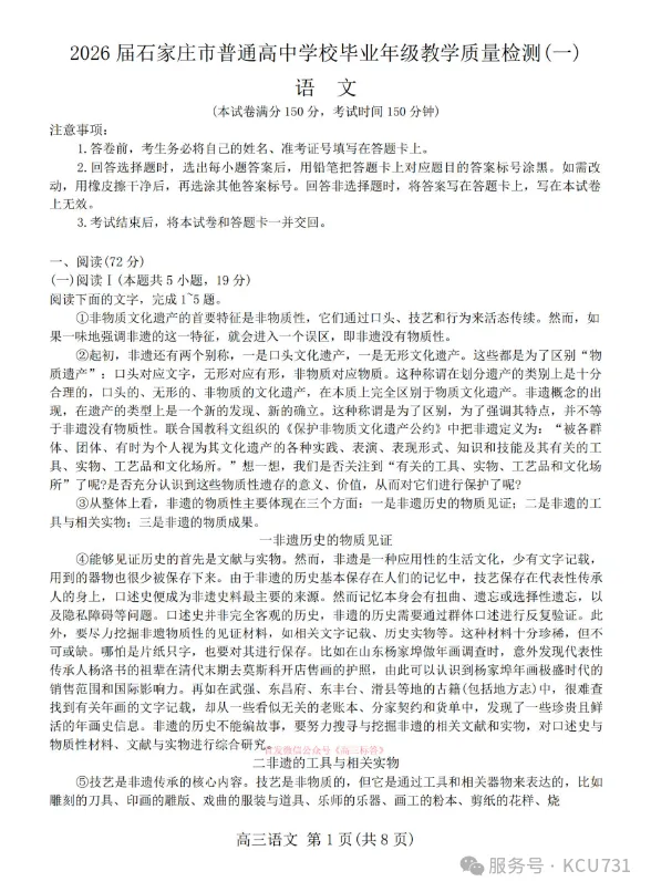 今天分享: 【石家庄一模】2026届石家庄市高三教学质量检测一!2026年3月(全科试卷及答案解析)建议将公众号星标,能够第一时间收到资料!