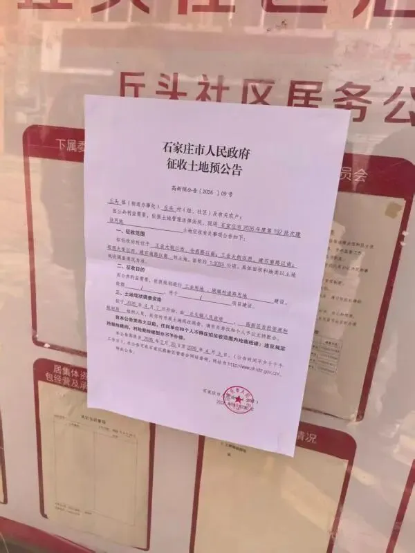 石家庄市人民政府征收土地预公告 高新预公告[2026]9-11号