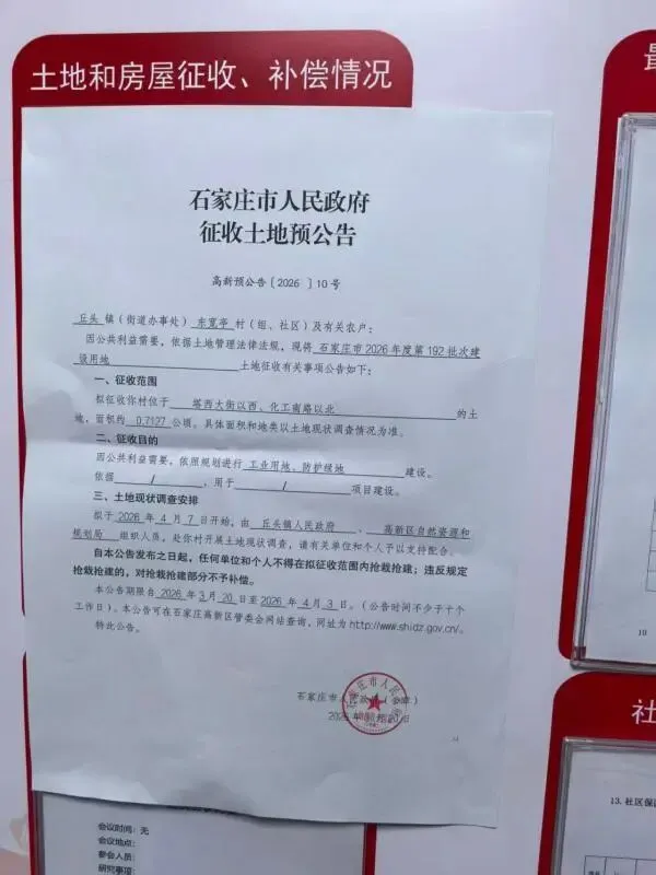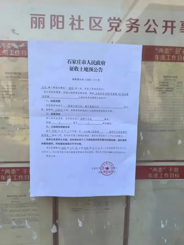 >石家庄市人民政府征收土地预公告 高新预公告[2026]9-11号