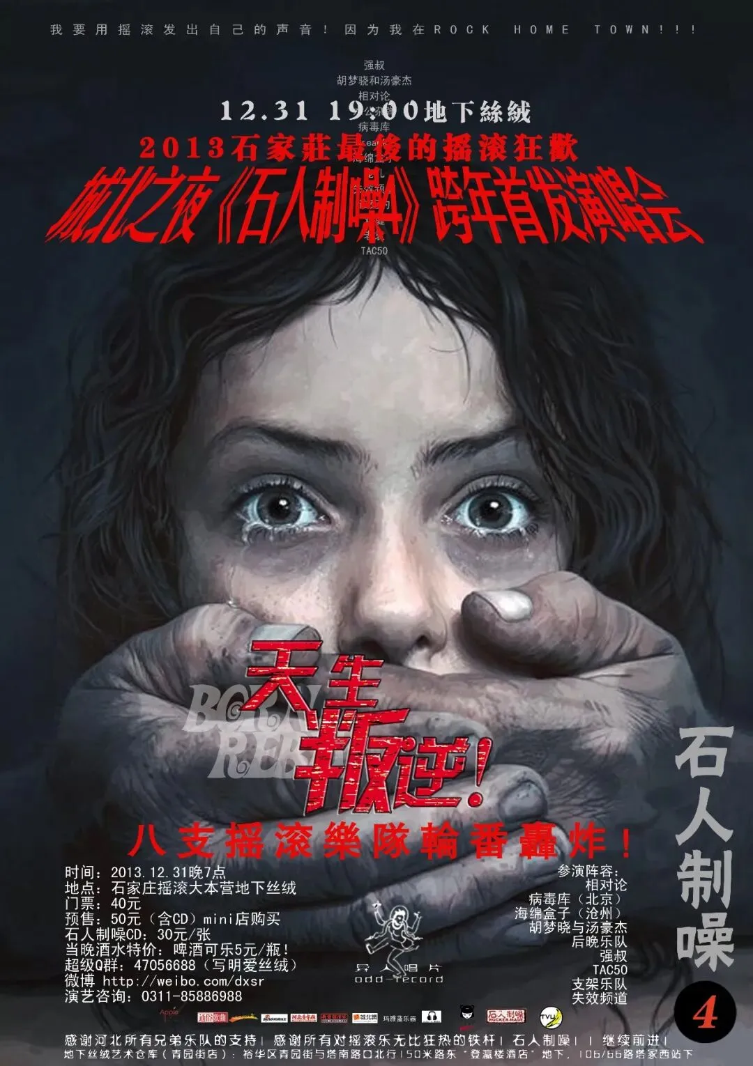 这个旨在发掘本土原创的音乐品牌至今已举办了65期,所有的本地乐队都曾在这个小小的舞台上初试啼声。时隔一载,[石人制噪]再度出发!我们将每月推进至少一期,也希望朋友们都来支持我们石家庄本地原创音乐,因为,你们的支持是我们最强的动力!
