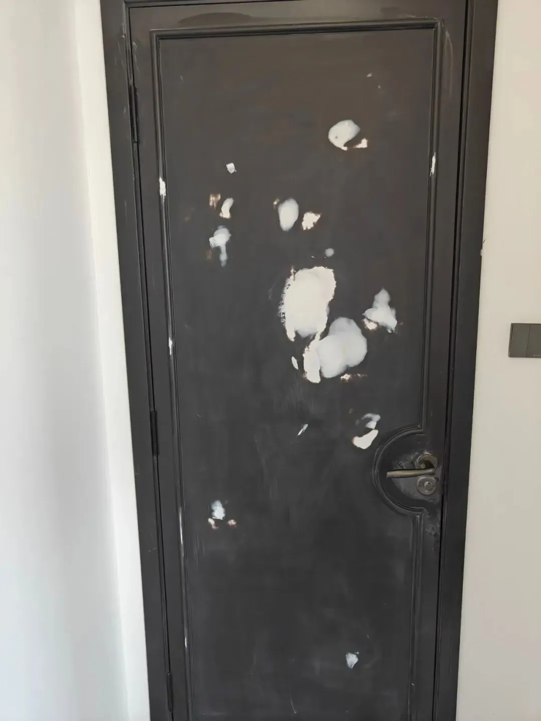 • 修复中:精细填补坑洞、打磨找平,一步步还原门板平整基底。