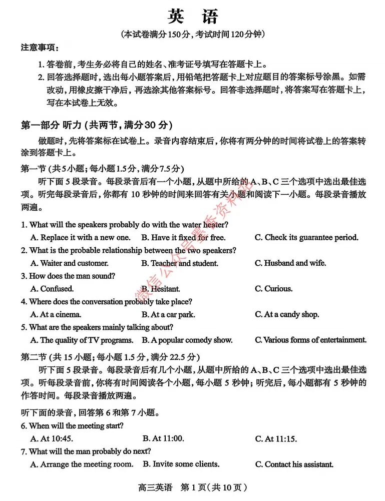 如需无水印试卷直接点击下方图片即可