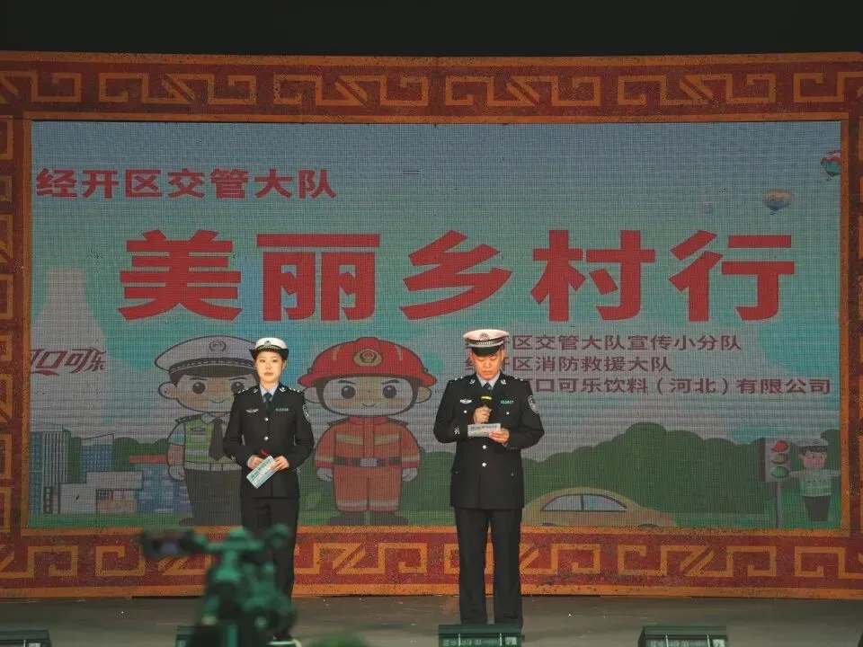石家庄市经济技术开发区交管大队联合河北中粮可口可乐开展“美丽乡村行”交通安全宣传活动