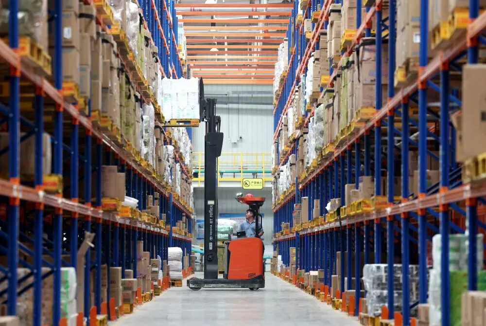 工人在操作仓储设备搬运货物 梁子栋 摄