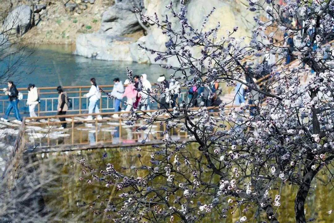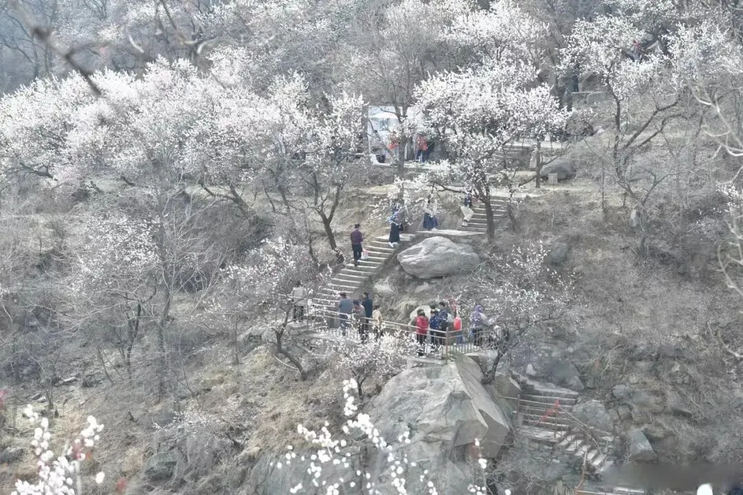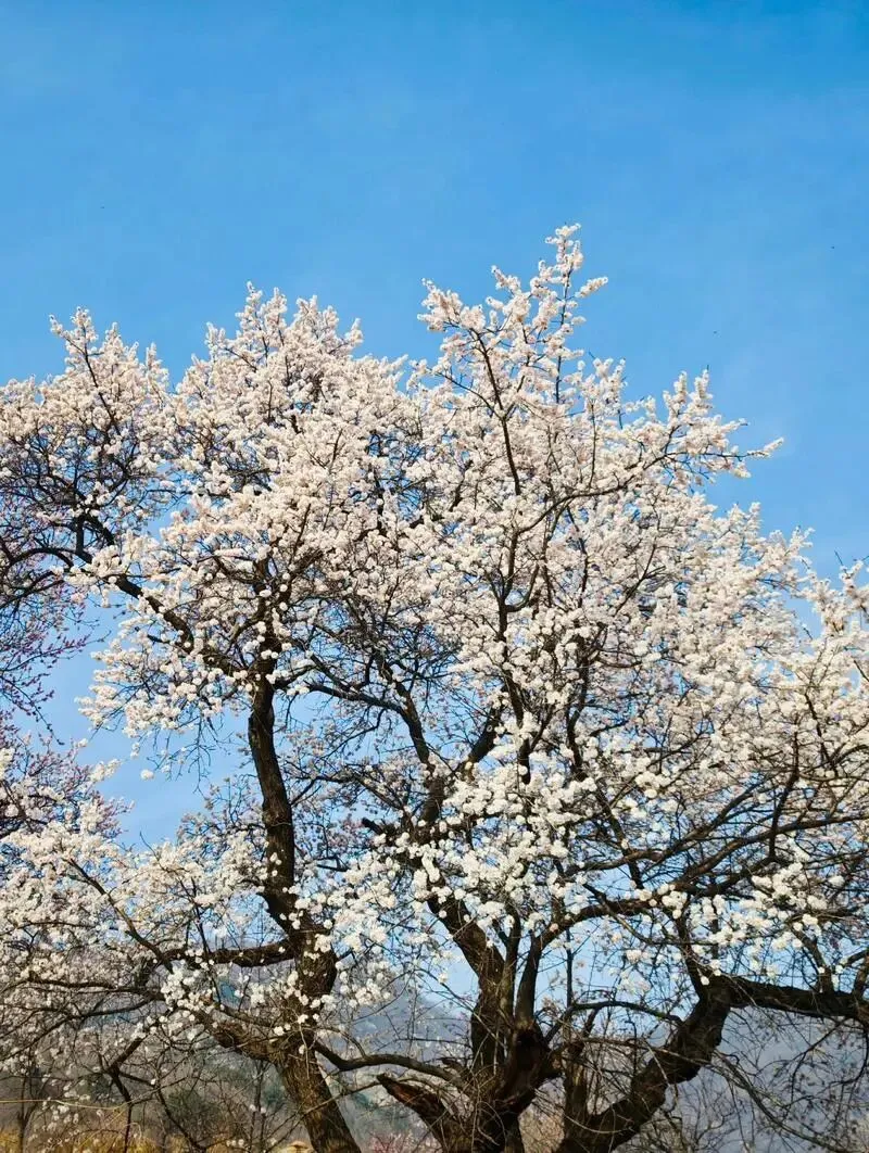最先去的是赞皇棋盘山,那边的杏花是真多,号称十里杏花谷,一点不夸张。漫山遍野都是,远远看过去像铺了一层白花花的云。景区是4A的,门票要收费,具体价格我记不太清了,大概几十块钱。里面还有好几个打卡点,能租古装拍照,还有非遗体验,累了可以去山下的市集逛逛,有卖笨鸡蛋和蜂蜜的,都是当地的特产。