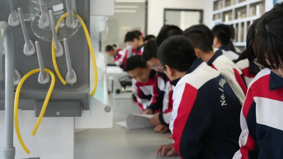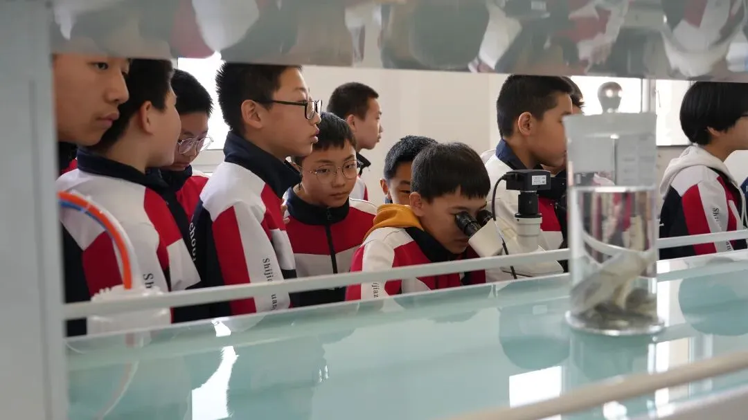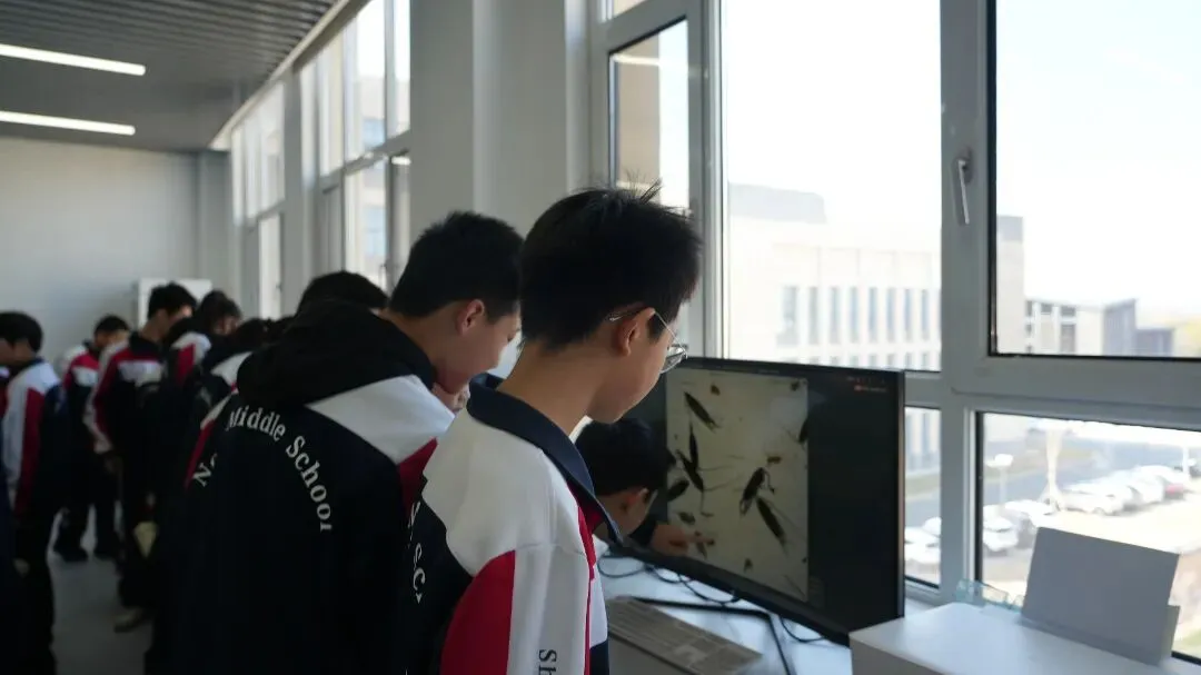 在专业讲解员的带领下,同学们有序来到实验楼二楼实验室,近距离认识各类先进的水环境监测仪器与实验器材。大家认真聆听讲解,仔细观察实验流程,在工作人员的指导下,亲手使用显微镜观察水中微生物,近距离观看各类水样本与科普标本,直观感受微观世界里水生态的奇妙,真切体会到科学监测在保护水环境中的重要作用。