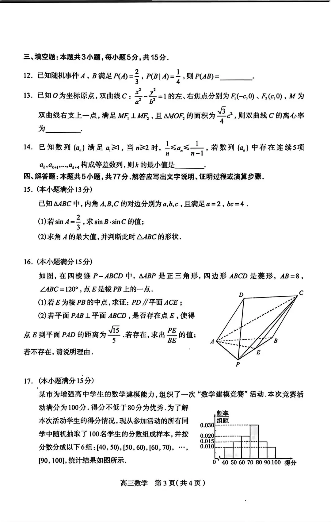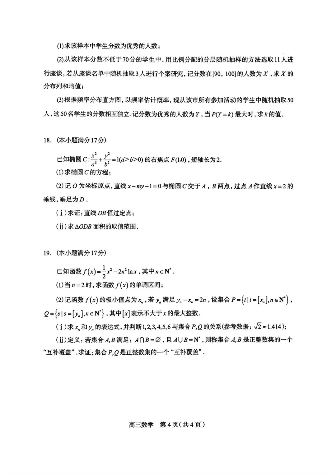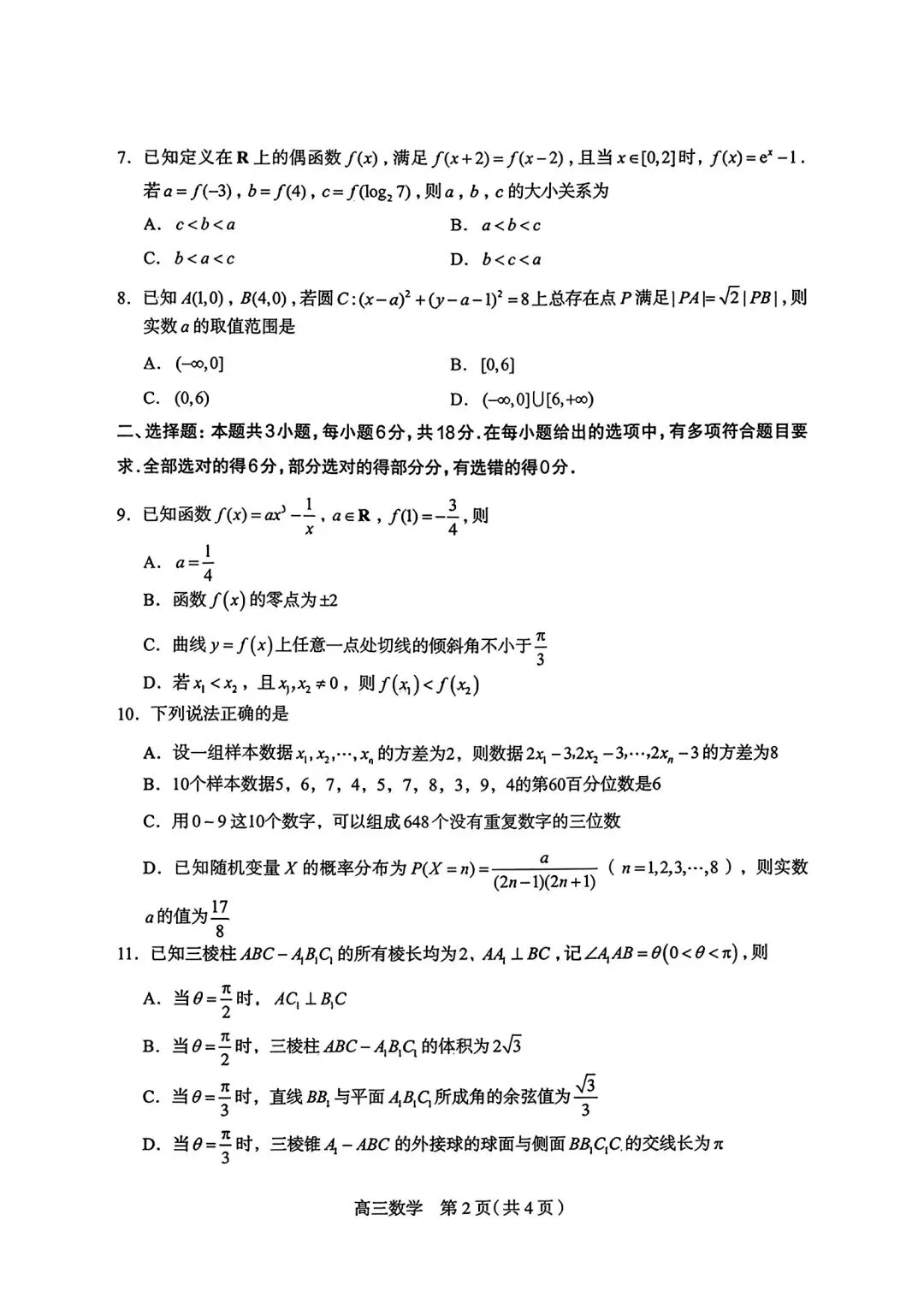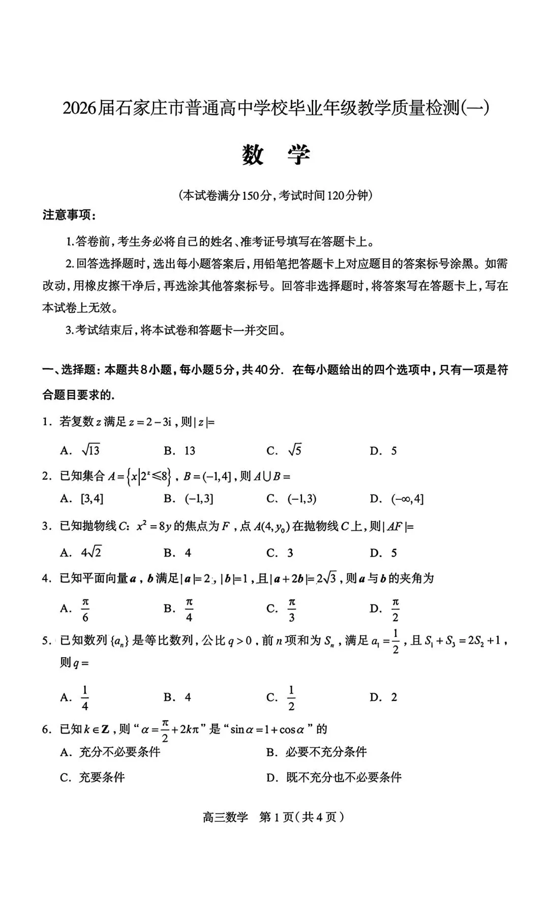 2026届石家庄一模数学试卷