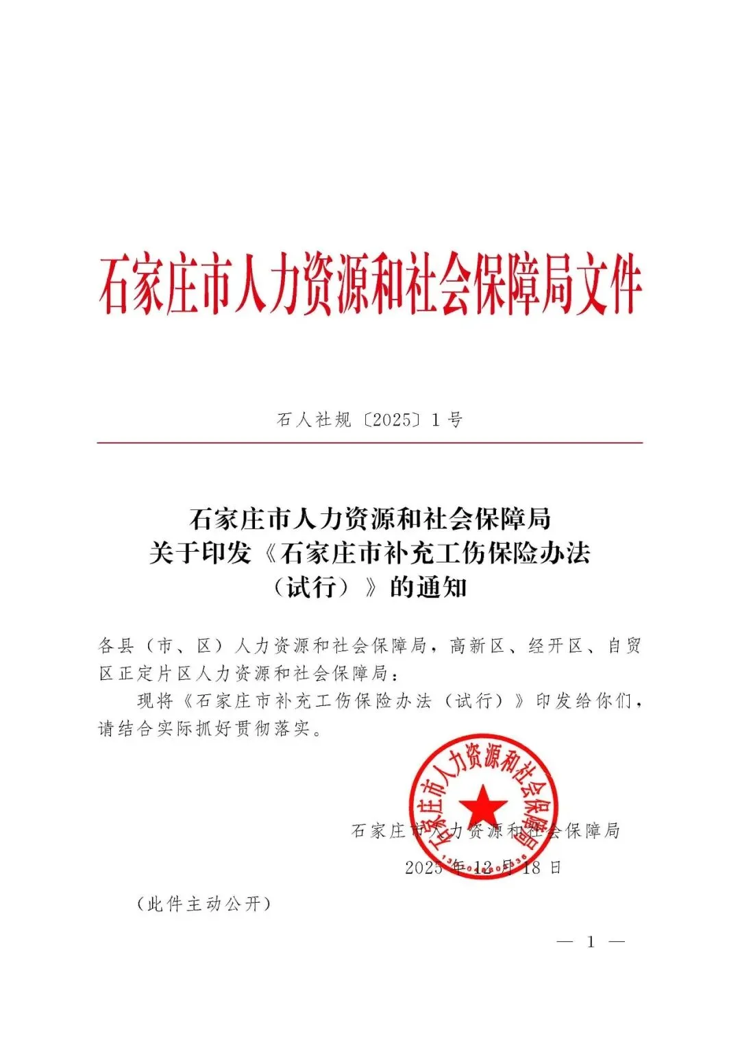 石家庄:出台全省首部补充工伤保险办法,未超70岁超龄劳动者以及快递等灵活就业人员可参加补充工伤保险(2026年1月1日施行)