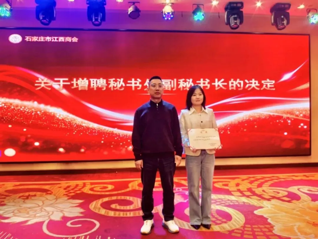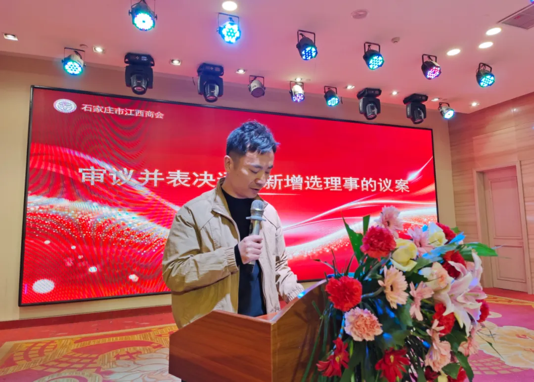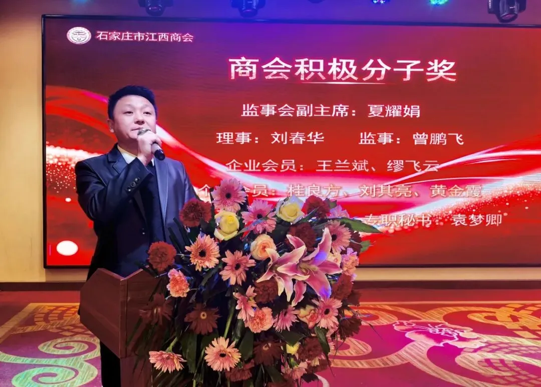 石家庄市江西商会会长赵书红、执行会长吴翔、赖丁明、范贤林、葛雪文、陈良等班子成员和近百名会员、乡友,在石江西兄弟商会、友好商协会:河北省江西商会廊坊办事处主任郑礼敏,石家庄市庐山商会会长程伟林,河北省江西商会安义县石家庄办事处主任魏鹏,河北省退役军人就业创业促进会会长程晓辉,河北省社会组织党委一分党委副书记、省信用协会书记白建军,河北省市场监管局原二级巡视员张群,河北省卫生行业对外技术交流协会会长闫晓东,河北省委军民融合办原二级巡视员赵勋,河北省商标品牌协会会长庞红军,河北省冀商商会会长董跃中,河北省移动营销企业商会会长王喜祥,河北省绿色产业协会会长左克永,河北省资本运营协会会长李沛熠,河北省天津商会会长王鹏,河北省农业风险联合会会长李中贺,河北省冀中商会会长高艳虎,河北省艺术名品商会会长冯茂江,河北省民营企业合作发展促进会会长李志彦,河北省电子商务协会会长赵亮亮,河北省礼品业商会会长吴铁铖,河北省人像摄影行业协会会长卢林辰,河北省民营企业服务商会会长张日勤,河北省宁波商会会长叶剑光,河北省冀南商会会长张聚义,石家庄市安防协会会长刘琳琳,石家庄市邢台商会会长張利全,石家庄市衡水商会会长孙英奇,石家庄市衡阳商会会长易建元,石家庄市邯郸商会会长徐书军,石家庄市沧州商会会长李勇昌,石家庄市三明商会会长彭金星,石家庄市信阳商会会长陈树林,石家庄市宜宾商会会长程福科,石家庄市台州商会会长金学纲,浙江丽水商会会长陶子林,石家庄市绍兴商会会长王伟敏,石家庄市通讯协会会长葛雪单,石家庄市乌兰察布商会会长赵墉,石家庄市企业服务商会会长申东阳,石家庄市广元商会会长汪劲松,石家庄市辛集商会会长杨卫东,石家庄市沛县商会会长王高俊,石家庄市大名商会会长任书豪,石家庄市平山商会会长李树红,石家庄市南长街街道商会会长曹智,公诚管理咨询公司华北分公司总经理孙仕磊,长城新媒体集团人力资源服务(河北)有限公司董事、总经理王成应,以及来自河北省湖南商会、河北省陕西商会、河北省客家商会、河北省山西商会、河北省内蒙古商会、河北省轨道交通协会、河北省文化发展促进会、河北省投资协会、河北省信息协会、河北省科技型中小企业协会、河北省女企业家协会、石家庄市社会组织联合会、石家庄市承德商会、石家庄市保定商会、石家庄市潮汕商会、石家庄市临海商会、石家庄市乐亭商会、石家庄市张北商会、石家庄市磁县商会、石家庄市公共关系协会、石家庄市保安协会、石家庄市技防协会、石家庄市社会心理学会、石家庄市托盘协会,以及战略合作单位的代表共200余人参加会议。