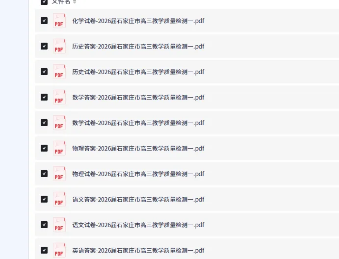 2026年3月份河北高三石家庄一模于2026年3月23至3月25日举行考试,这里考后整理了全科试卷及答案PDF版网盘下载。资料来源于网络,仅供大家参考学习。