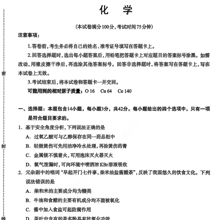 2026年3月河北高三石家庄一模化学政治地理语文等试卷及答案PDF版网盘下载