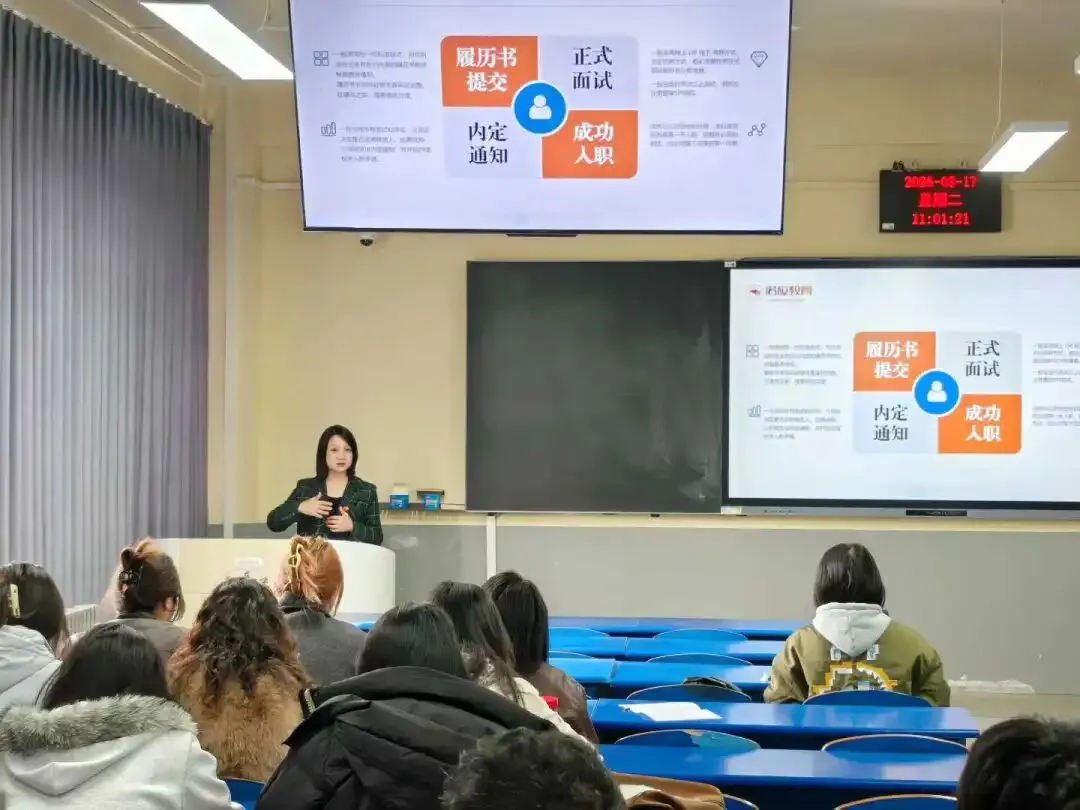 日本就职项目负责人郑老师不远千里从厦门赶来,面对即将步入社会的大四学子们她深知清晰、实用的信息与指导至关重要。