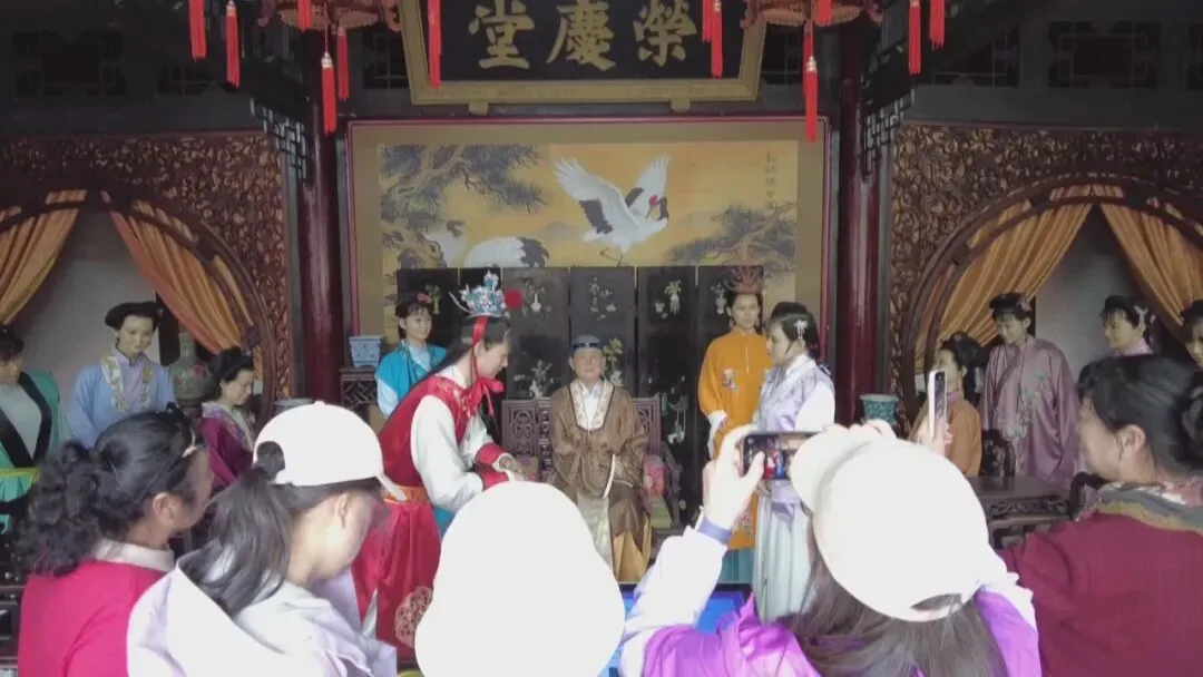 在小学五年级的语文课本中,有一篇名为《红楼春趣》的课文,它节选自四大名著之一的《红楼梦》。课文中,宝玉、黛玉等人在大观园里放风筝的生动场景,是不是给大家留下了深刻的印象?在石家庄正定的荣国府里,一草一木,一桌一椅,都尽力还原着书中的场景。游客们有的驻足拍照,有的讨论着《红楼梦》中的情节。