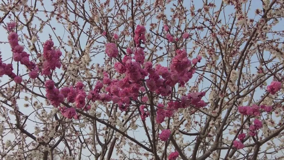 从荣国府出来,不远处就是正定南城门,又称长乐门,是正定古城的标志性建筑。此时的南城门广场,春意正浓,粉白相间的榆叶梅和粉嫩的桃花竞相开放,繁花与巍峨的古城墙交相辉映,勾勒出一幅独属于古城的春日画卷。不少市民带着孩子在这里踏青、拍照,享受着惬意的春日时光。