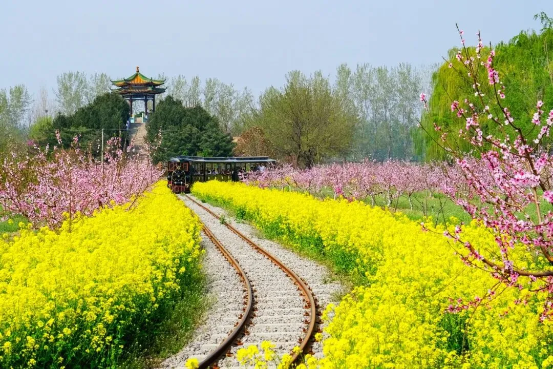 春风送暖,晋州市周家庄生态观光园内桃花、油菜花等次第开放,繁花似锦,花香满园。慕名而来的游客坐在特设的“旅游专列”内穿行其间,赏花嗅香,流连忘返。