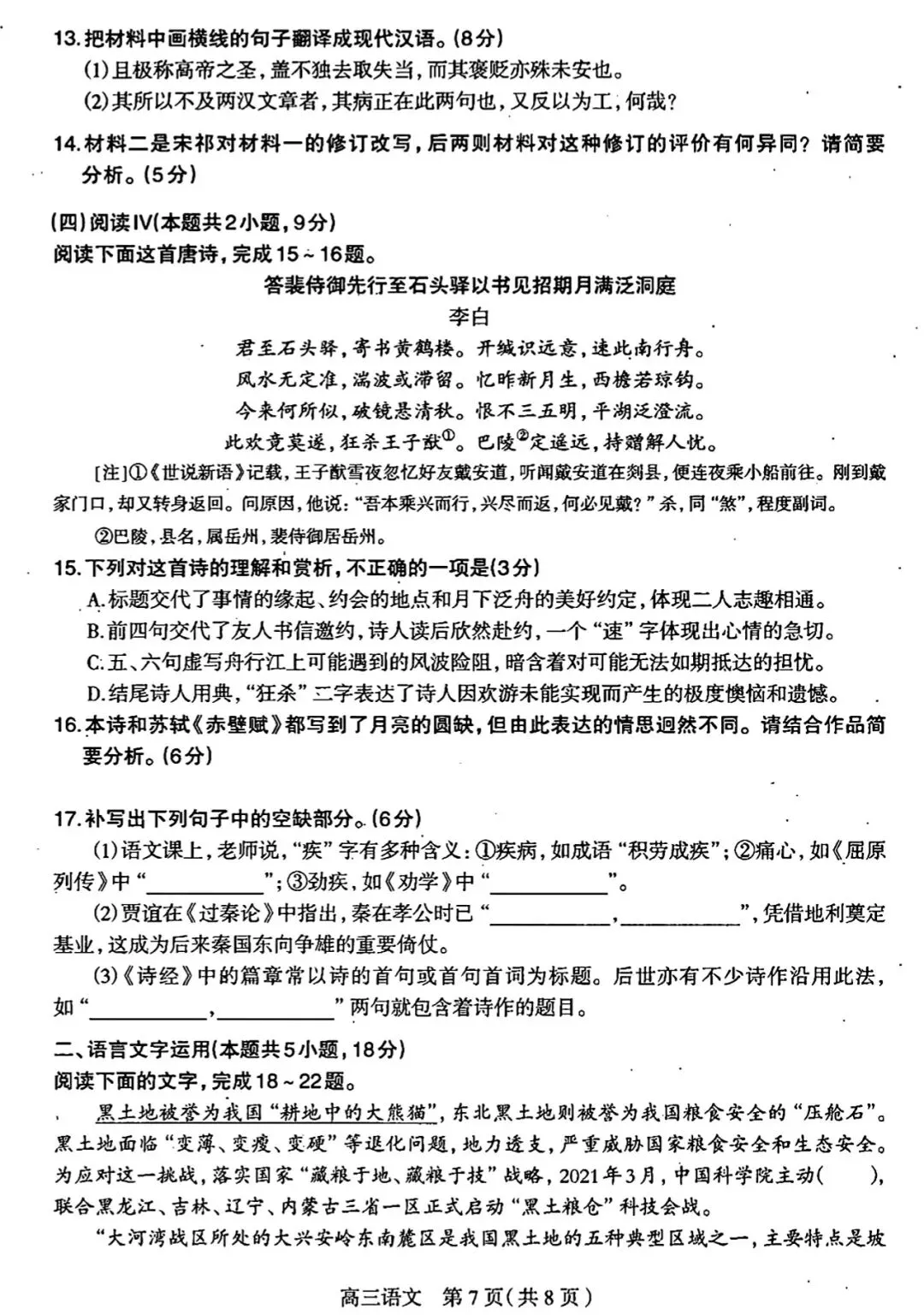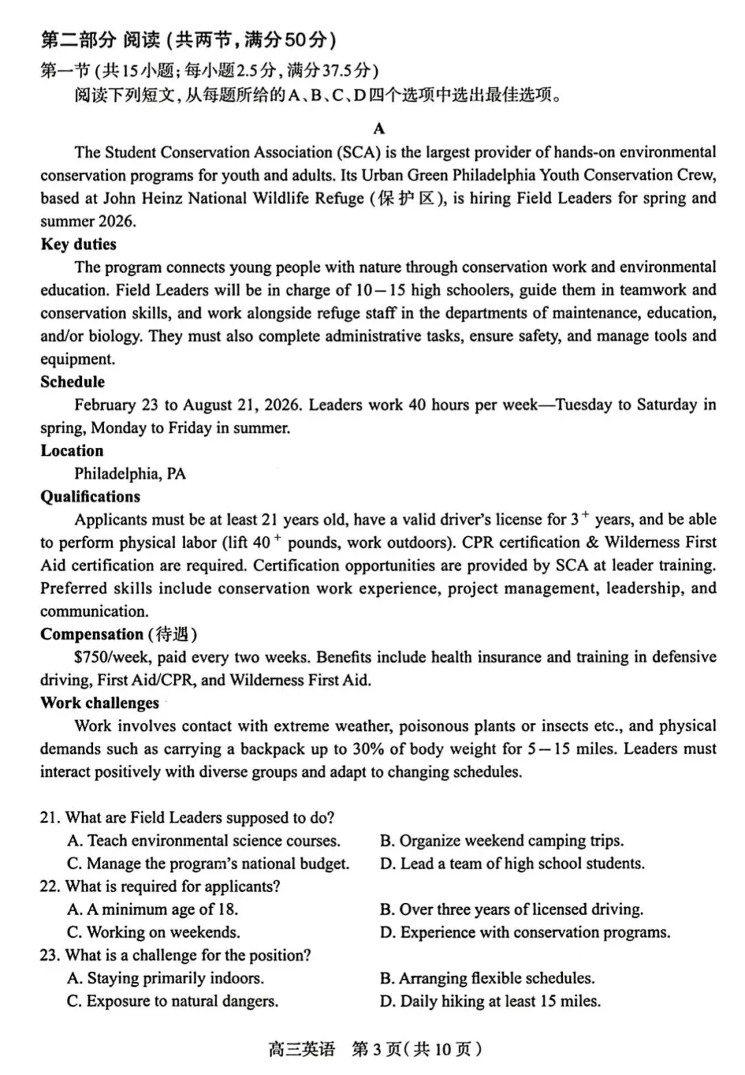 【金太阳】江西省2026届高三年级下学期开学素养训练‖全科(含听力音频)