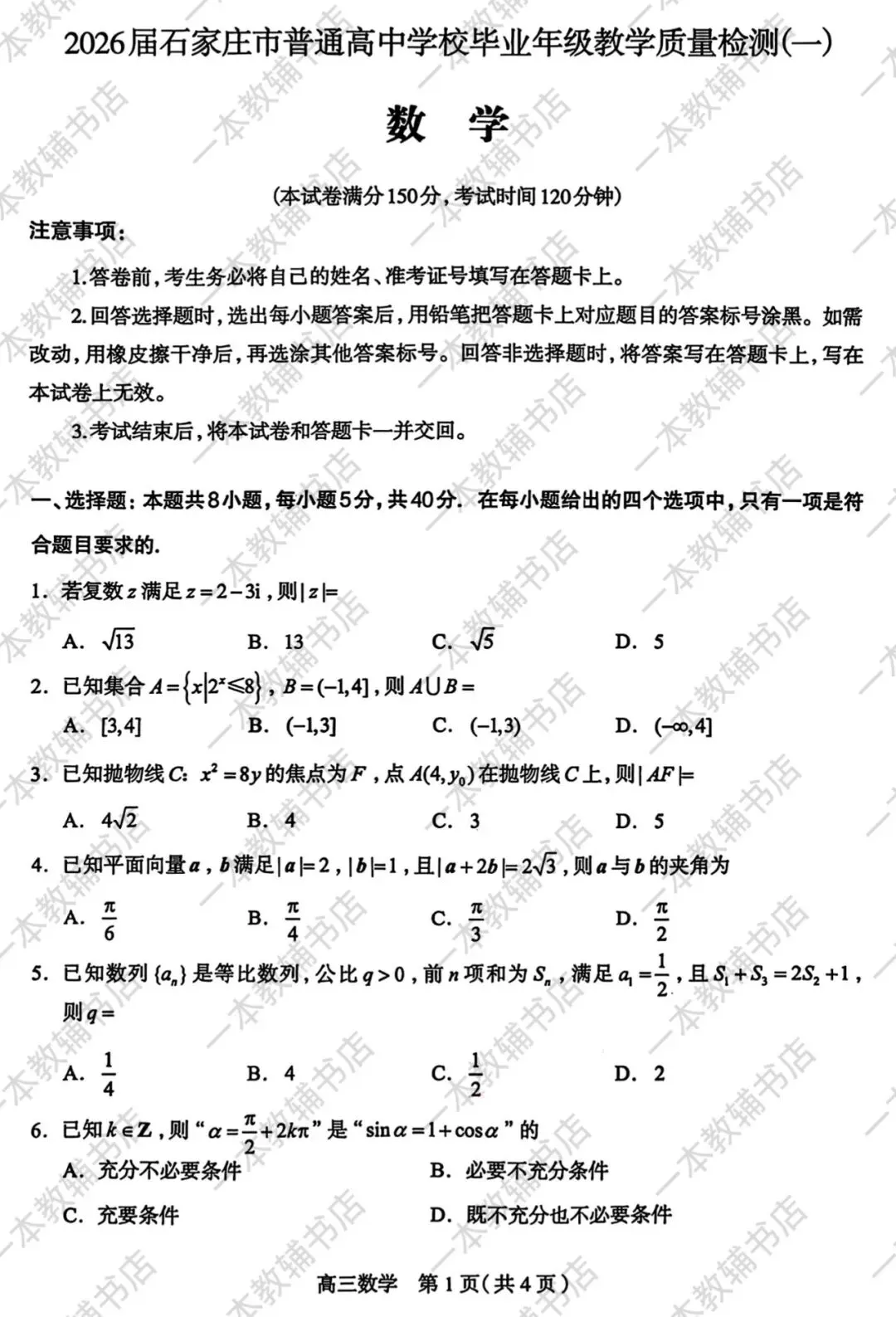 【金太阳】河北省2026届高三(上)学业水平调研‖全科(含听力音频)