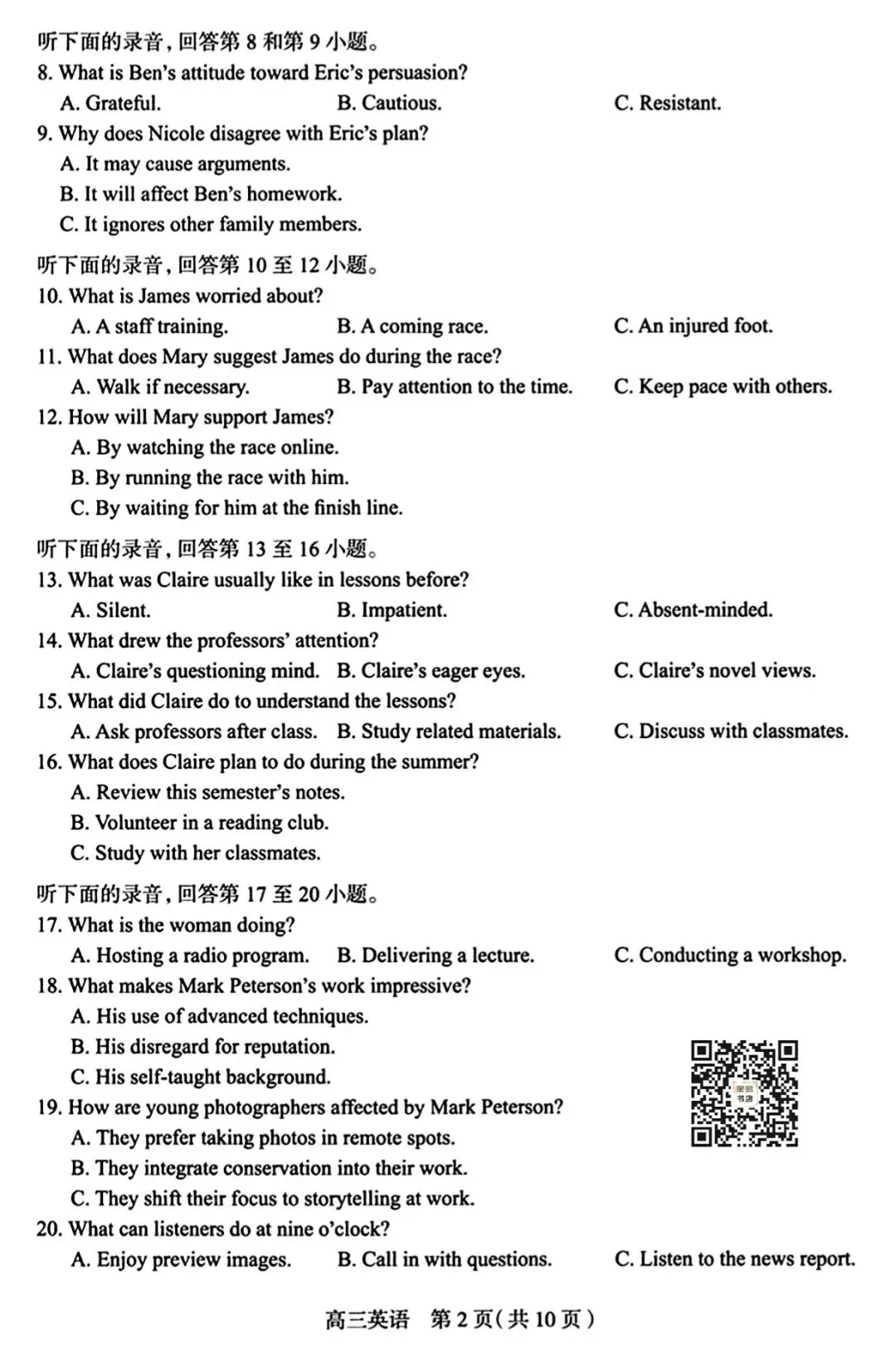 【安徽省江南十校】2026届高三综合素质检测‖全科(含听力音频)