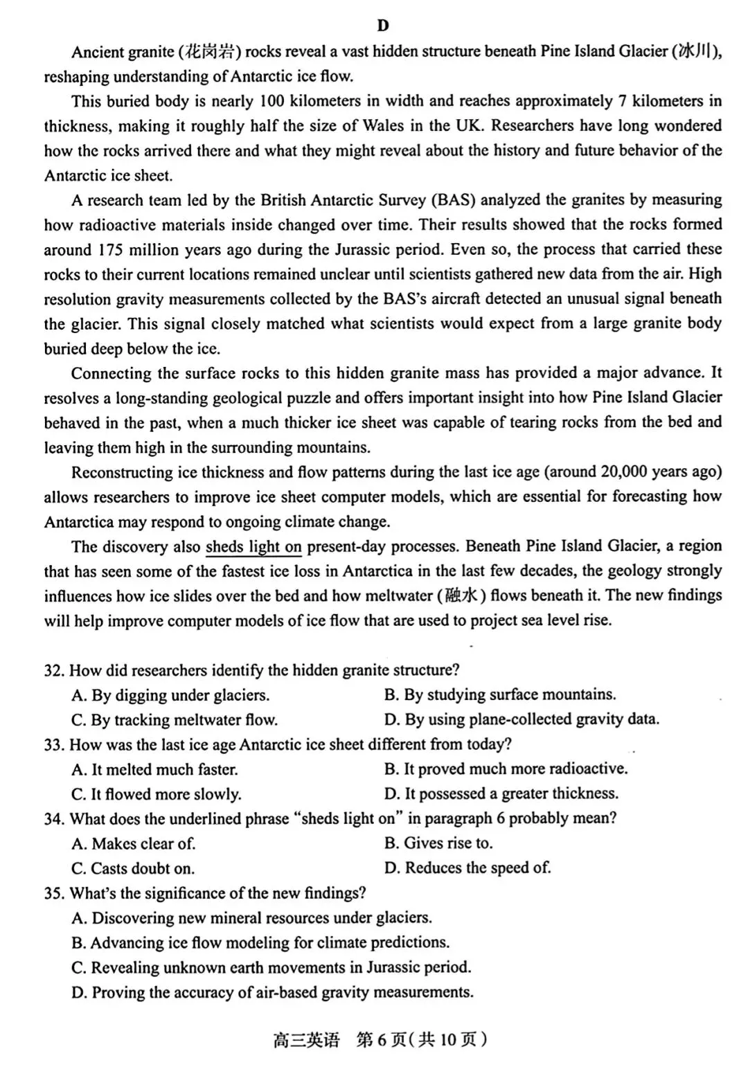 【天一大联考·怀化一模、衡阳二模、张家界一模、湘西州一模】湖南省2026届高三1月期末联考‖全科(含听力音频)