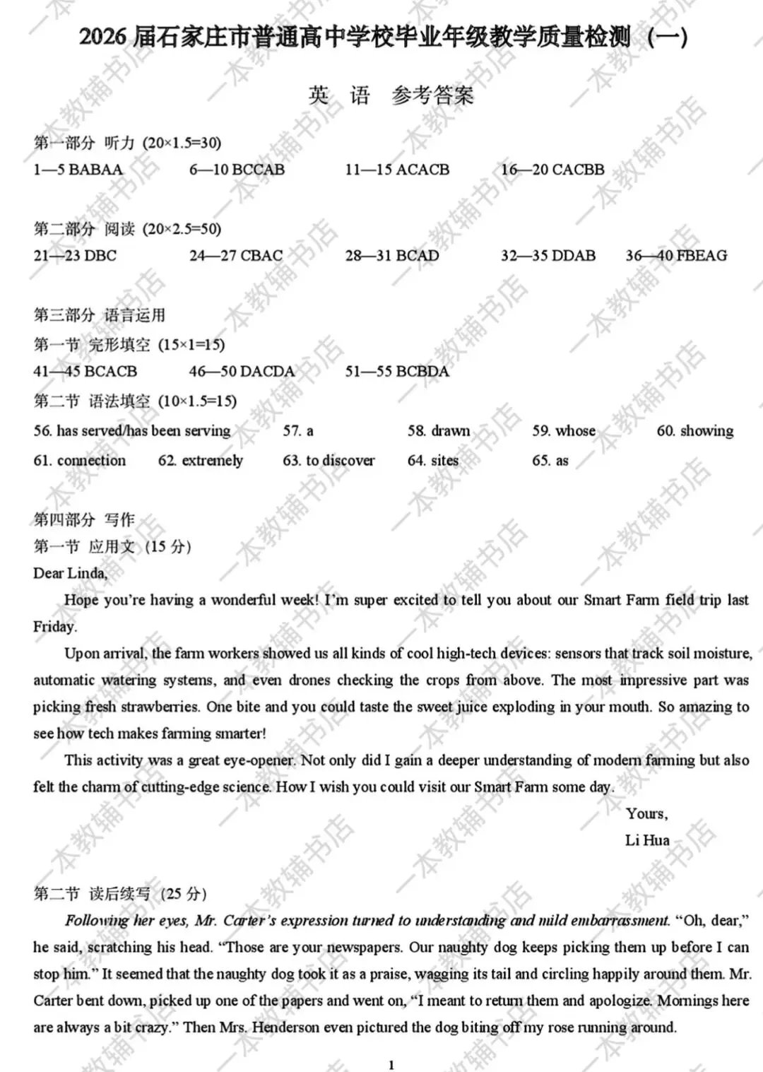 【衡水金卷】陕西省2026届高三年级2月教学质量检测‖全科(含听力音频)