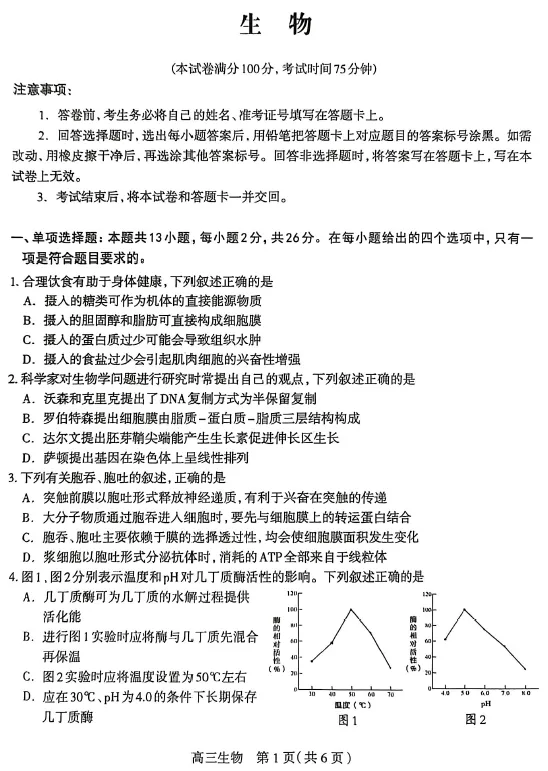 【石家庄一模】河北省2026届石家庄市普通高中学校毕业年级教学质量检测(一)‖全科(含听力音频)
