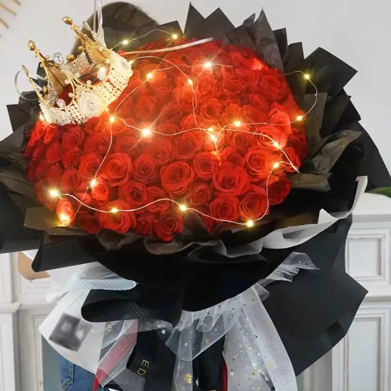 其实很爱你-99朵红玫瑰搭配皇冠灯带,时光荏苒,你仍是我最心爱的女孩,甜甜的爱意溢满屏💕