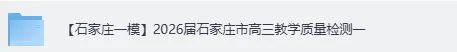 【石家庄一模】2026届石家庄市高三教学质量检测一《数学》《英语》《政治》《地理》《化学》《生物》《历史》《物理》《语文》试卷答案已出,接下来的考试继续加油!今天学姐给各位考生准备的资料是: