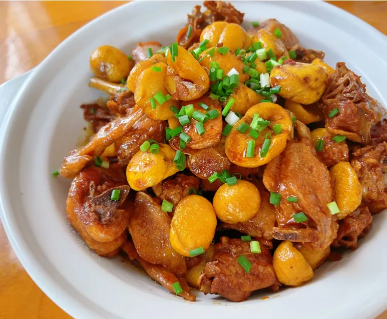 早上可以找家本地馆子,来一碗羊汤,配烧饼。汤白,带点胡椒劲,天凉时喝下去,胃先暖了。中午适合吃山货,板栗炖鸡、柴锅炖豆腐、贴饼子都很稳,不是花样多,而是越嚼越香。晚上建议试试烤全羊或农家炖菜,人多吃更合适,院子里风一过,炭火味和草木味混在一起,困意都松了。青龙的板栗很有名,甜,不噎,蒸着吃就够好。要说一道最能代表这里的家常味,我会选板栗炖鸡:土鸡先炒出油香,再下姜片、酱料和清水,小火慢咕嘟,快收汁时倒进剥好的板栗,炖到鸡肉发软、栗子起沙,汤一拌饭,人就安静了。