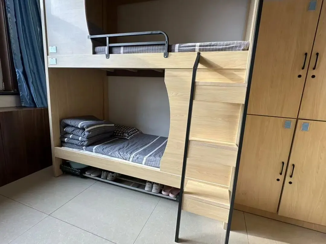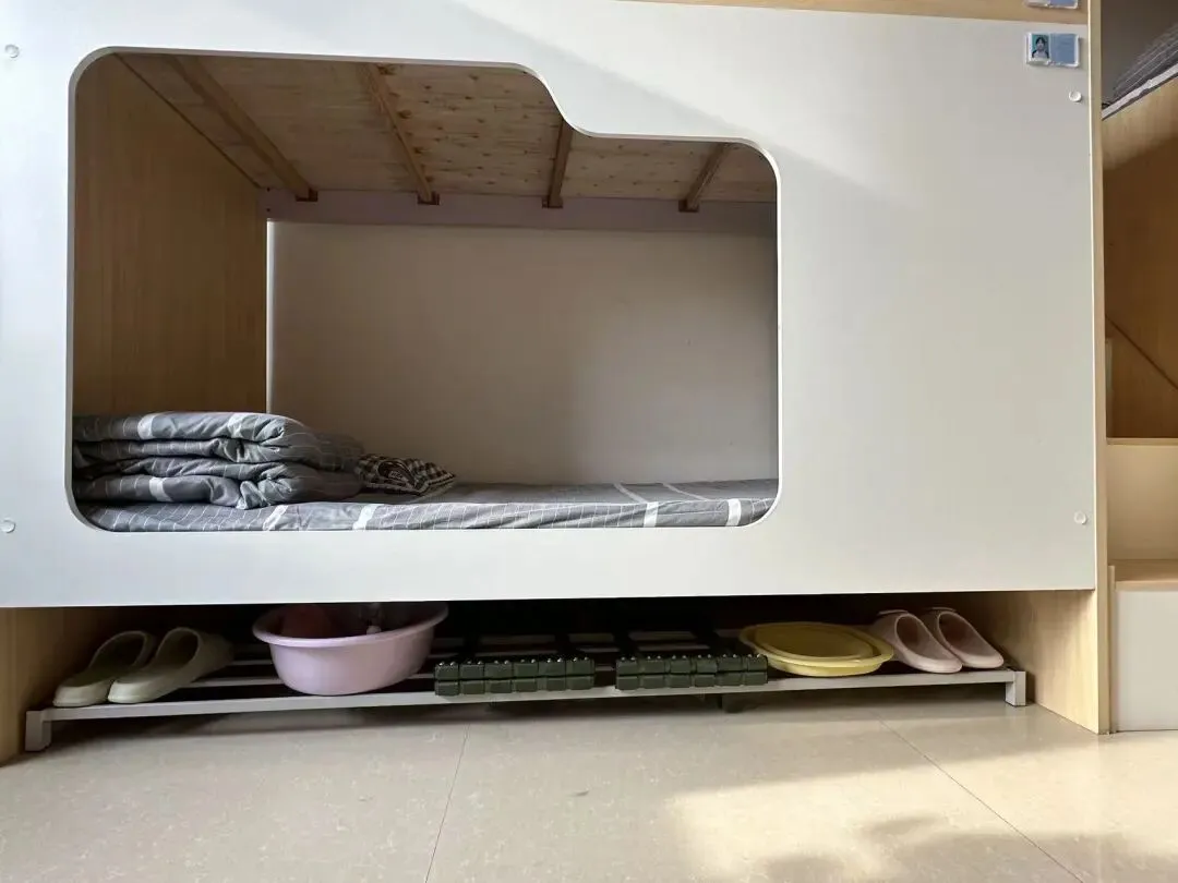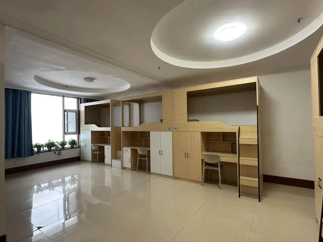 床铺平整有序,被褥叠放整齐,无杂物堆积,营造清爽舒适的休憩空间;个人物品分类摆放,洗漱用品、衣物鞋袜井然有序,不杂乱无章;公共区域保持洁净,地面无垃圾、无死角,门窗通透,空气常新,共同维护温馨整洁的公共环境。