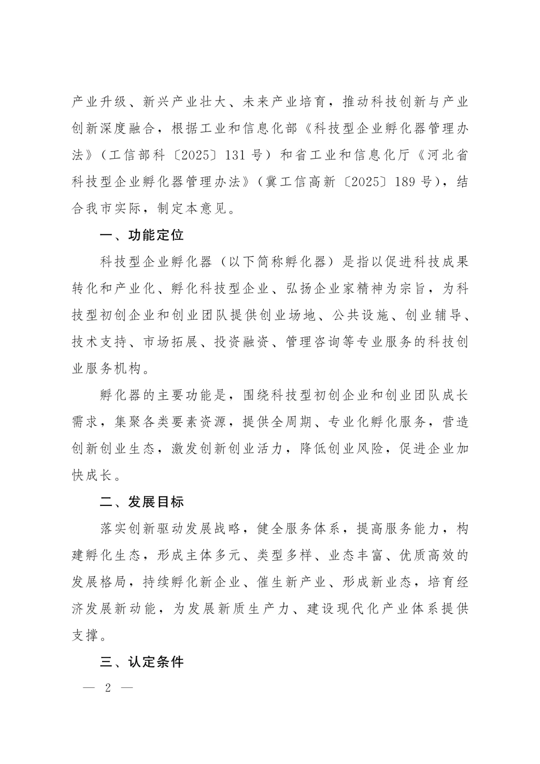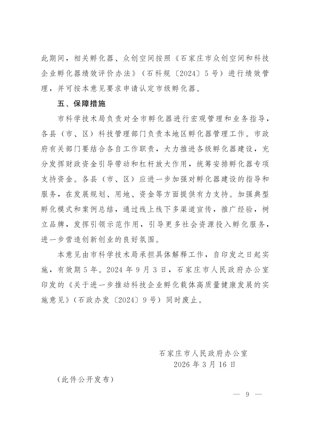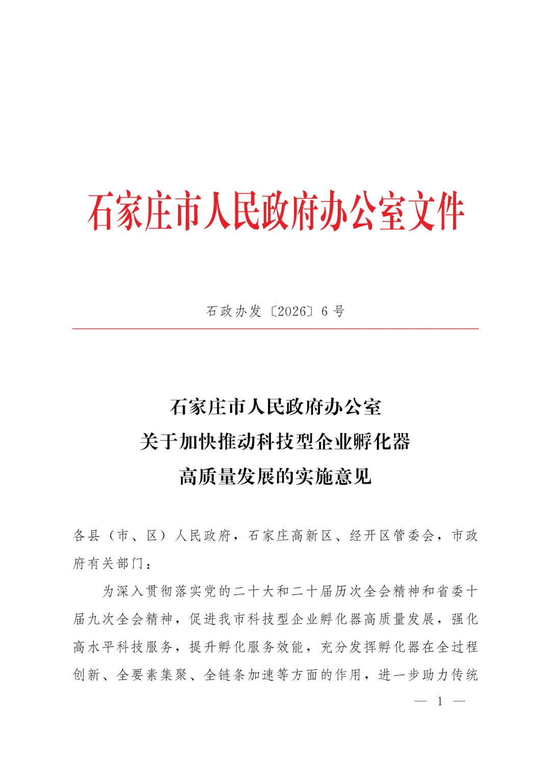 >石家庄市人民政府办公室 关于加快推动科技型企业孵化器 高质量发展的实施意见