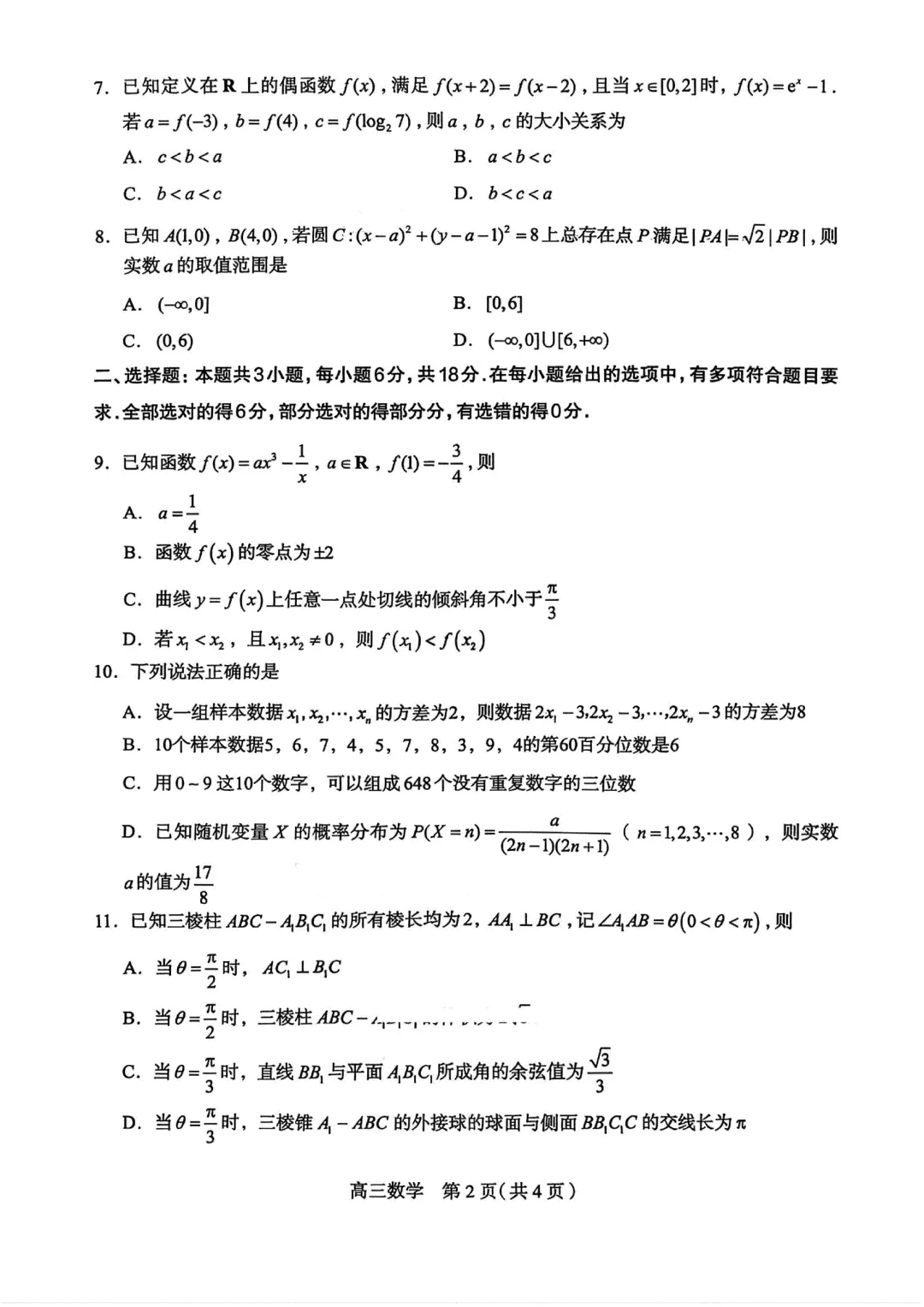 【优质试题】2026年九师联盟数学试题及答案(2月27日)