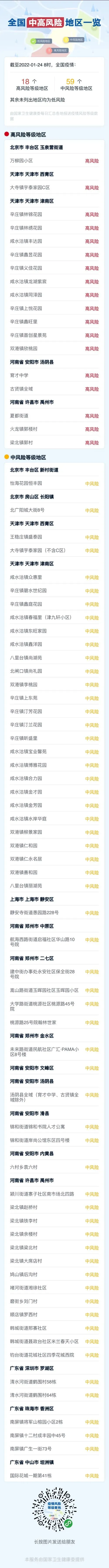 关注全国中高风险地区的变化,及时关注确诊病例和密切接触者的行程轨迹,如果在时间和空间上存在重合,立即向所在社区(村)、单位报告,按要求落实相关防控措施。