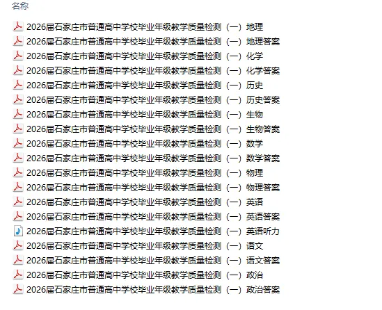 【河北卷】河北省2026届石家庄市普通高中学校毕业年级教学质量检测(一)(石家庄一模)